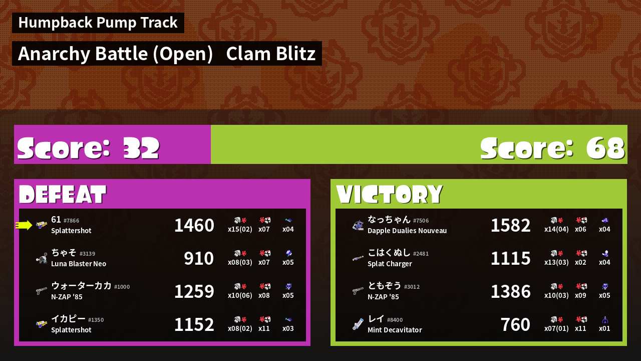 | Mode | Clam Blitz - Anarchy Battle (Open) | ||