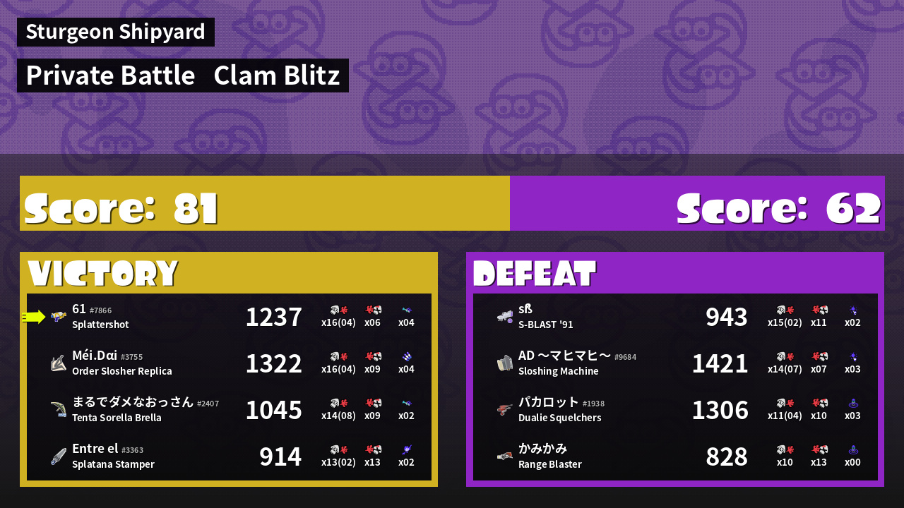 | Mode | Clam Blitz - Private Battle | ||