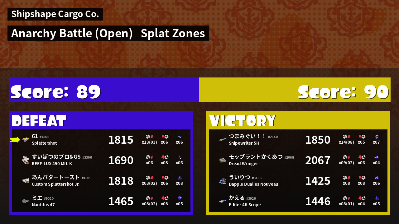 | Mode | Splat Zones - Anarchy Battle (Open) | ||