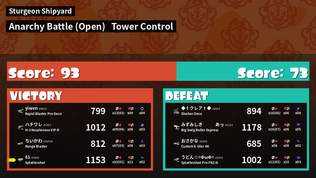 | Mode | Tower Control - Anarchy Battle (Open) | ||