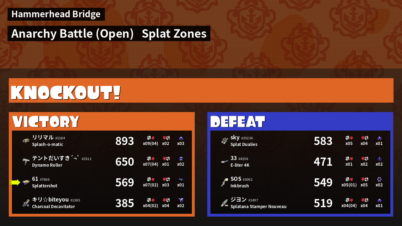 | Mode | Splat Zones - Anarchy Battle (Open) | ||