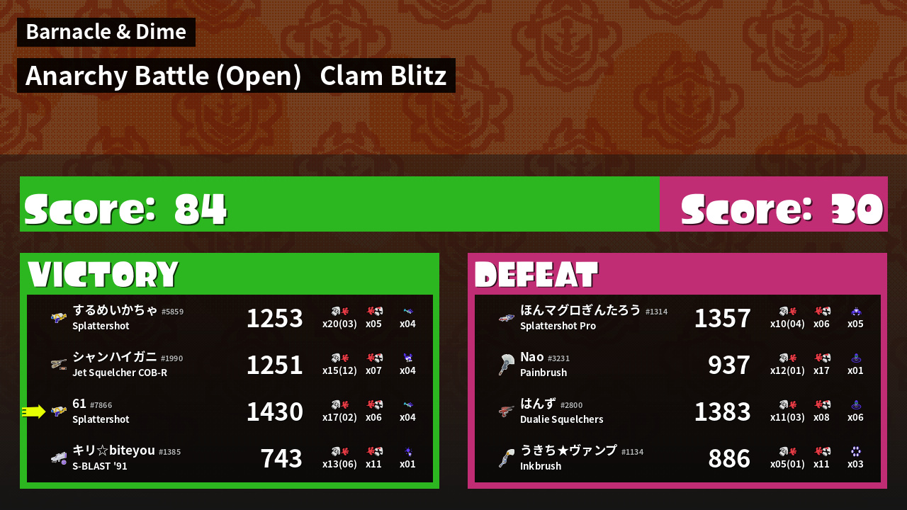 | Mode | Clam Blitz - Anarchy Battle (Open) | ||