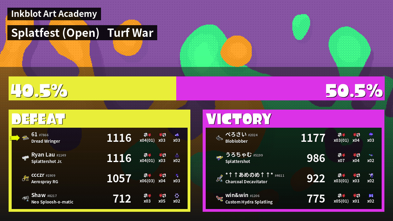 | Medals | #1 Turf Inker #1 Enemy-Base Inker #1 Super Jump Spot | ||