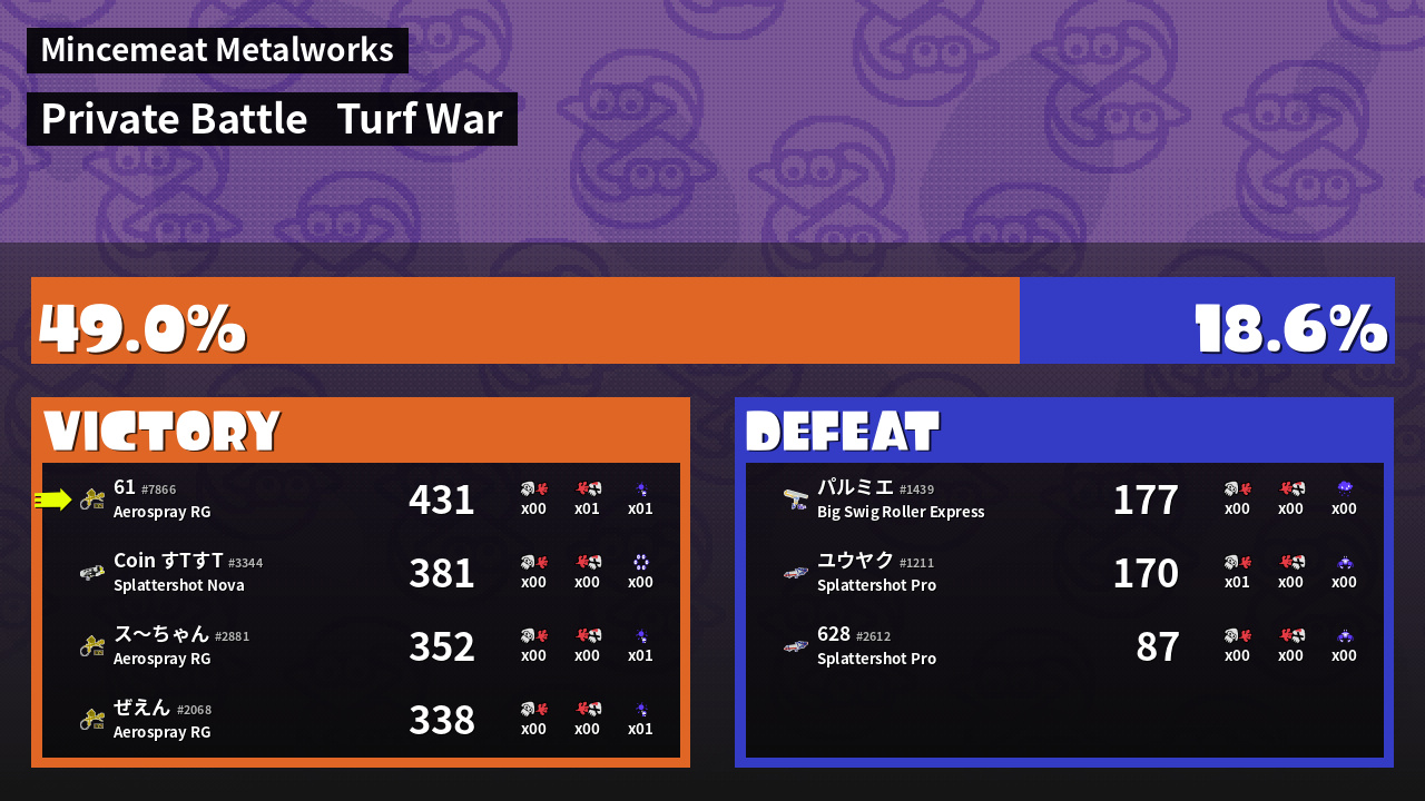 | Medals | #1 Turf Inker #1 Enemy-Base Inker | ||