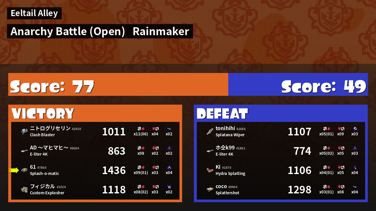 | Mode | Rainmaker - Anarchy Battle (Open) | ||