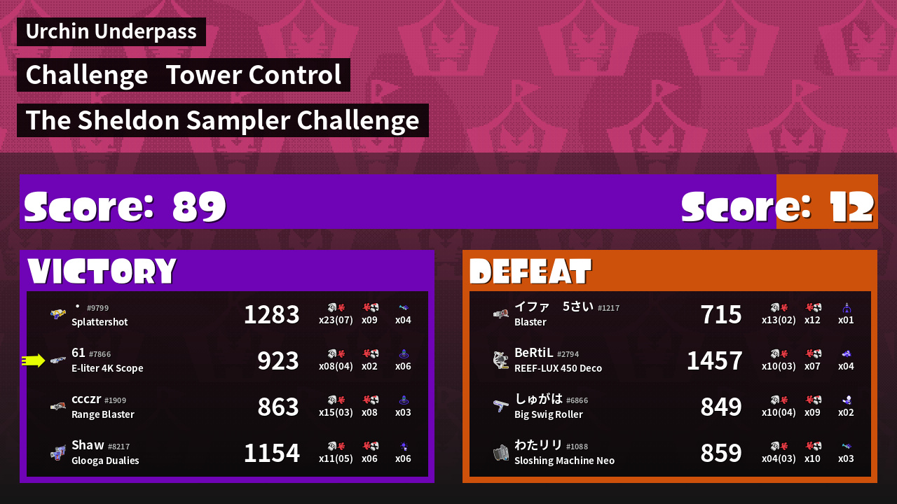 | Challenge | The Sheldon Sampler Challenge Make the most of random weapons! | ||