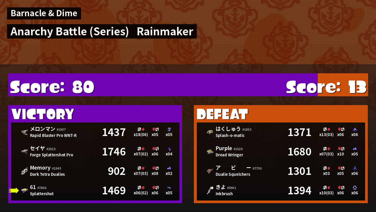 | Mode | Rainmaker - Anarchy Battle (Series) | ||