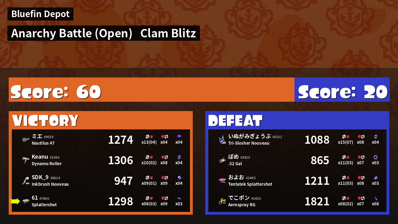| Mode | Clam Blitz - Anarchy Battle (Open) | ||