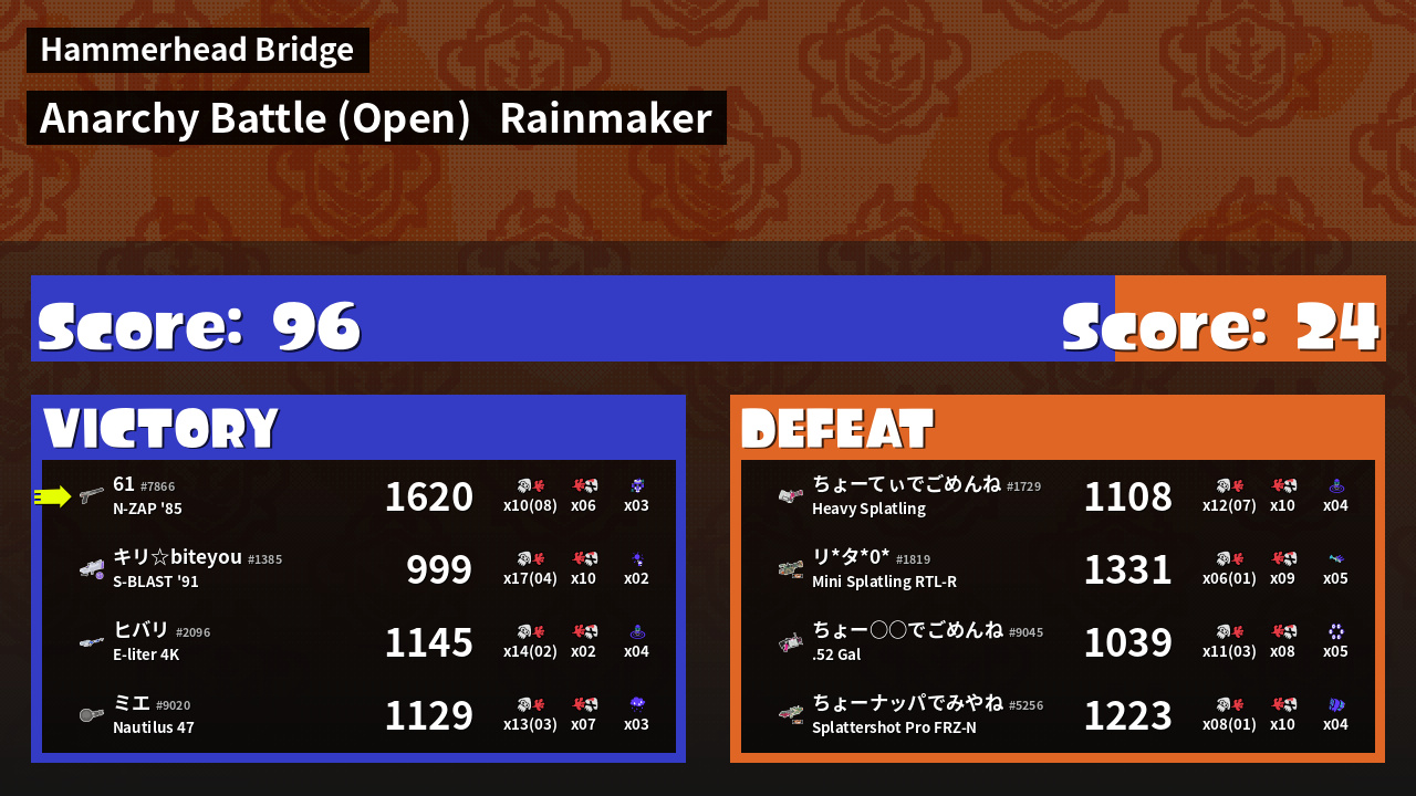 | Mode | Rainmaker - Anarchy Battle (Open) | ||