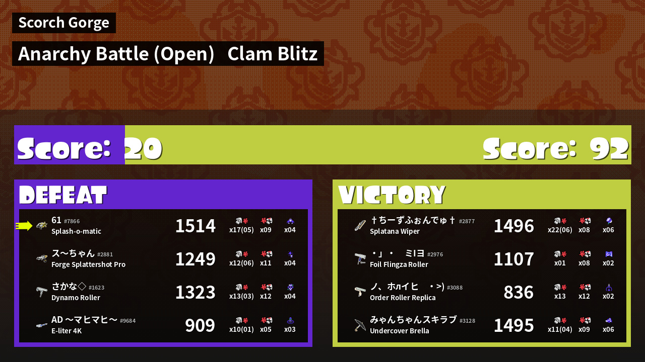 | Mode | Clam Blitz - Anarchy Battle (Open) | ||