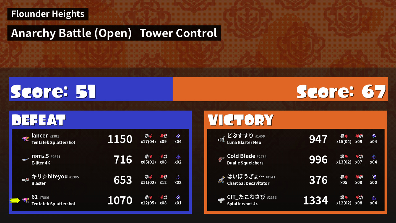 | Mode | Tower Control - Anarchy Battle (Open) | ||