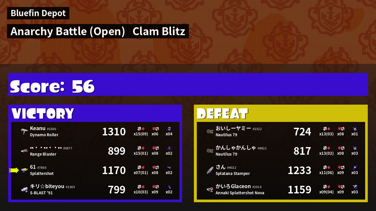 | Mode | Clam Blitz - Anarchy Battle (Open) | ||