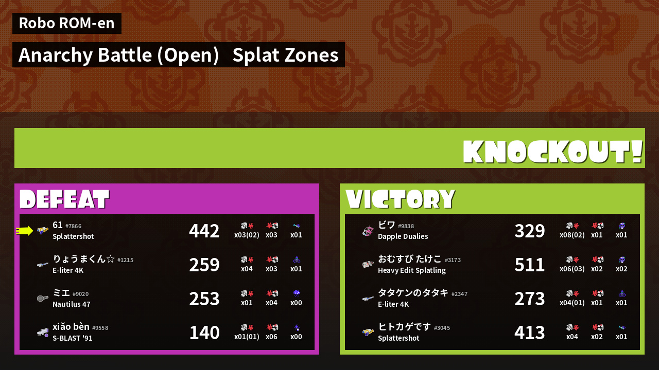 | Mode | Splat Zones - Anarchy Battle (Open) | ||
