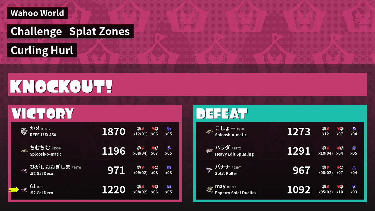 | Weapon | .52 Gal Deco ( Curling Bomb / Splattercolor Screen) | ||