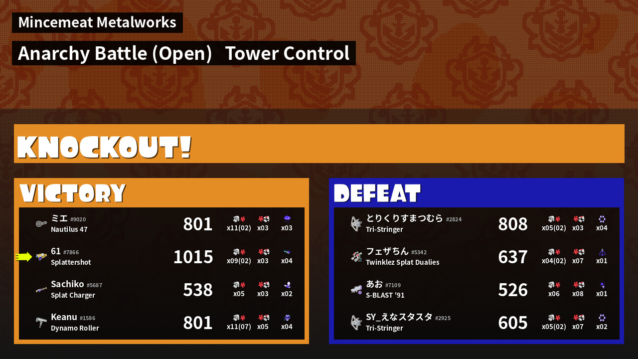 | Mode | Tower Control - Anarchy Battle (Open) | ||