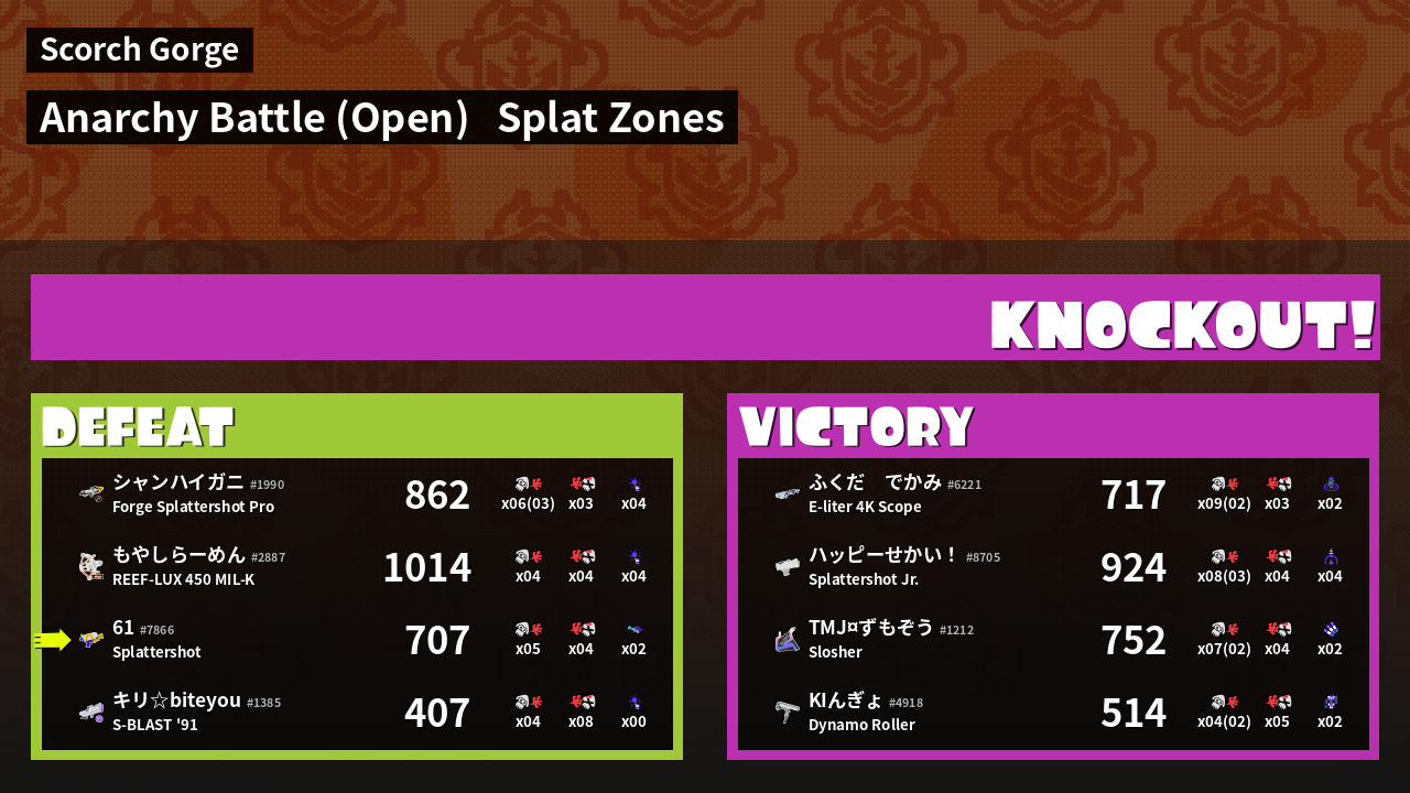 | Mode | Splat Zones - Anarchy Battle (Open) | ||