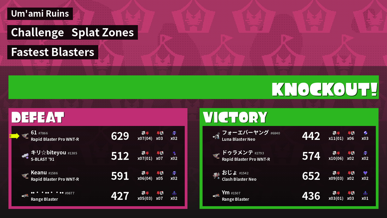 | Medals | #1 Overall Splatter #1 Turf Inker #1 Popular Target | ||