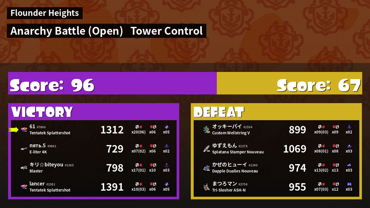 | Mode | Tower Control - Anarchy Battle (Open) | ||