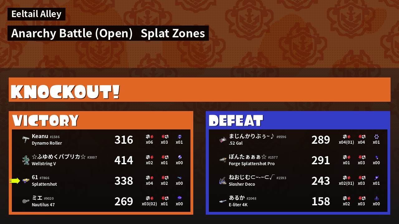 | Mode | Splat Zones - Anarchy Battle (Open) | ||
