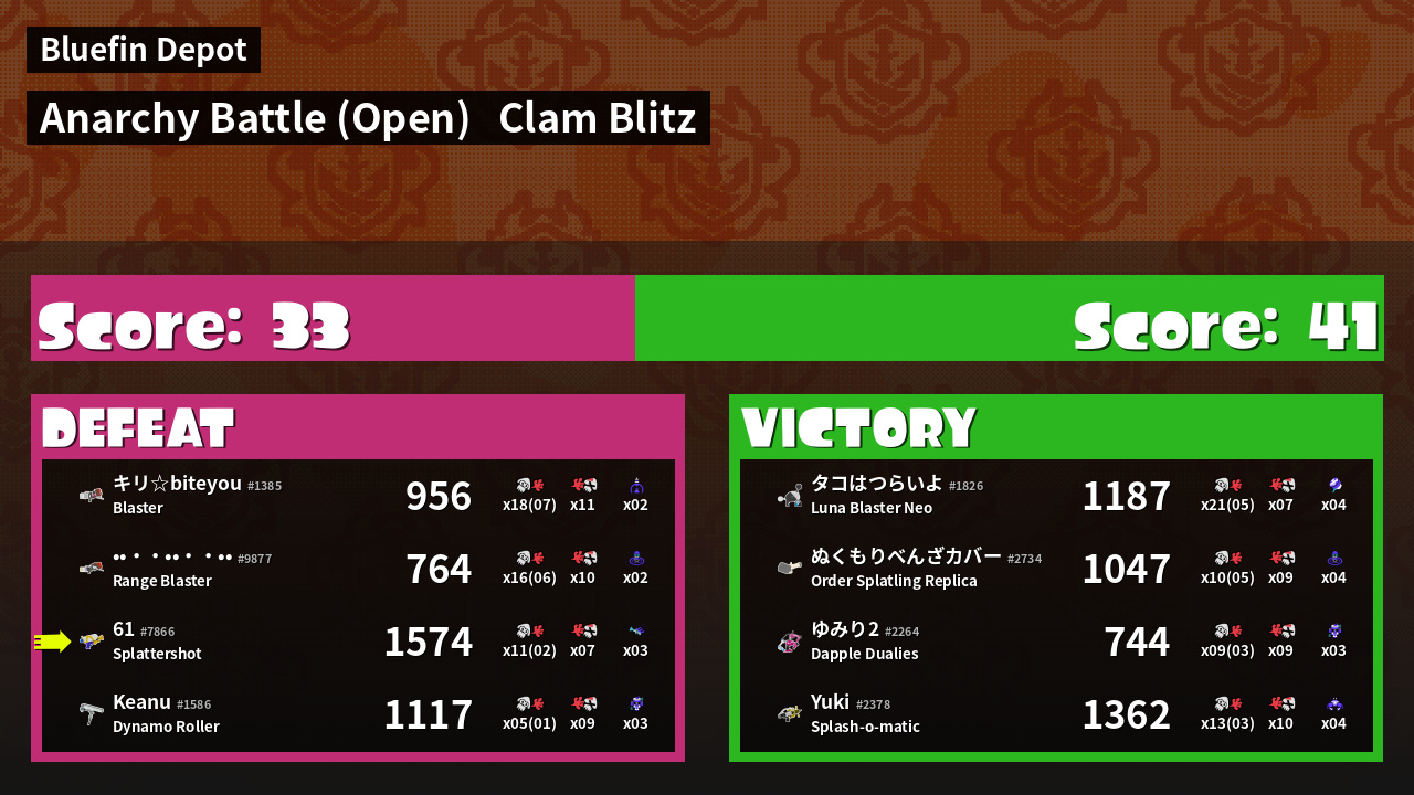 | Mode | Clam Blitz - Anarchy Battle (Open) | ||