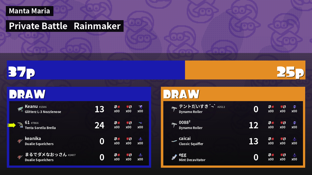 | Weapon | Tenta Sorella Brella ( Ink Mine / Trizooka) | ||