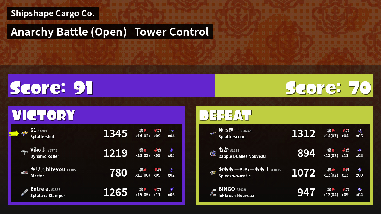 | Mode | Tower Control - Anarchy Battle (Open) | ||