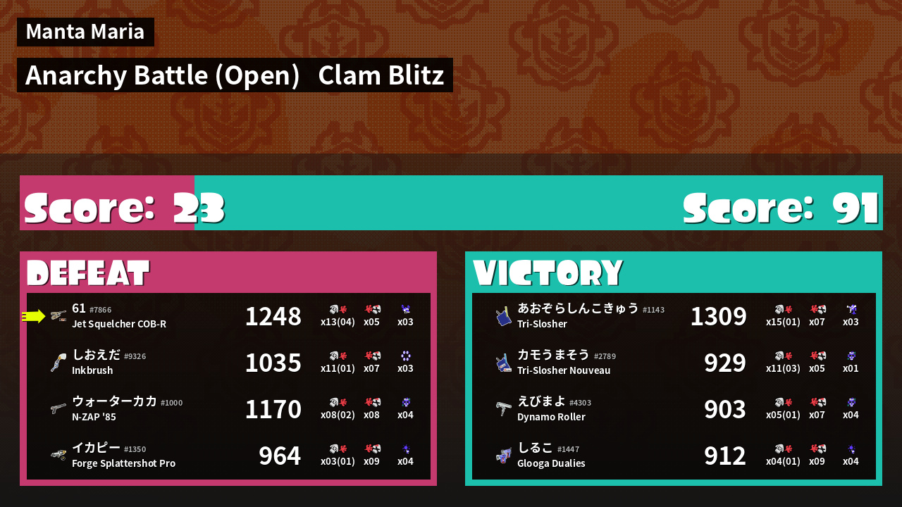 | Mode | Clam Blitz - Anarchy Battle (Open) | ||