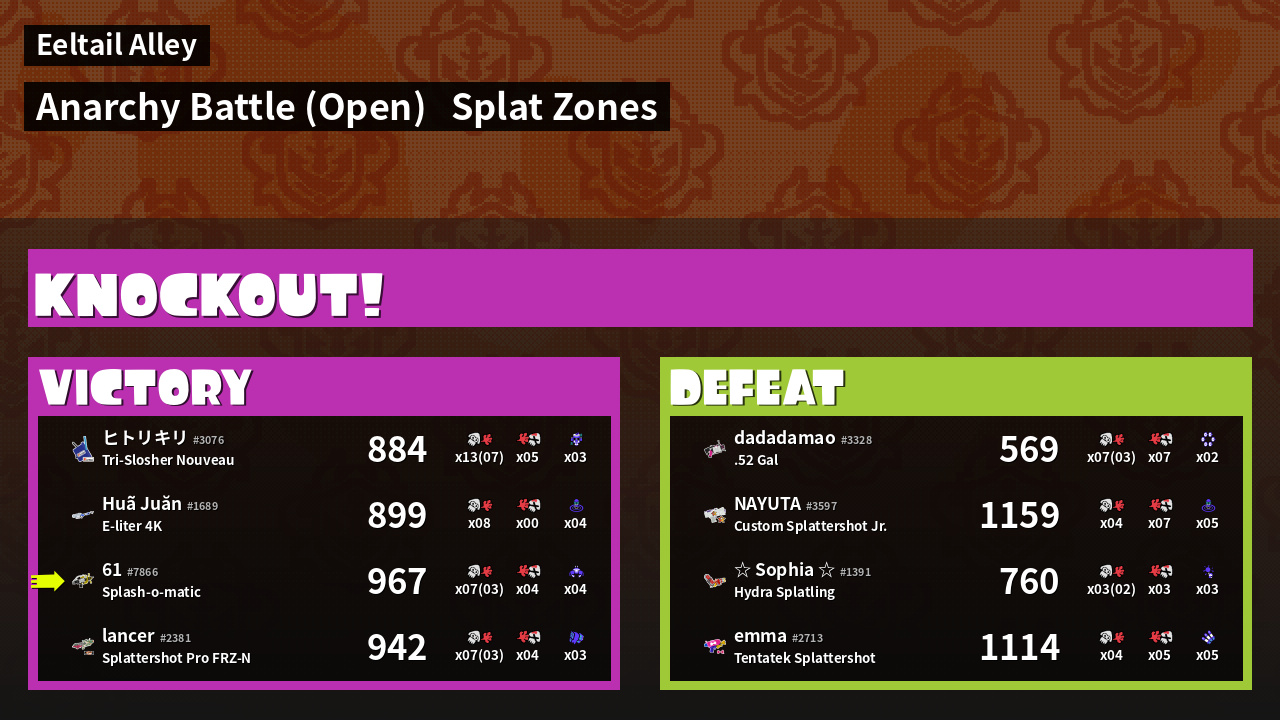 | Mode | Splat Zones - Anarchy Battle (Open) | ||