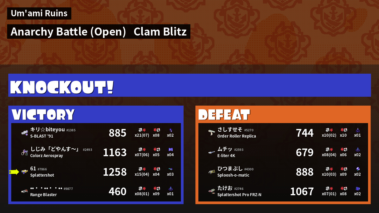 | Mode | Clam Blitz - Anarchy Battle (Open) | ||