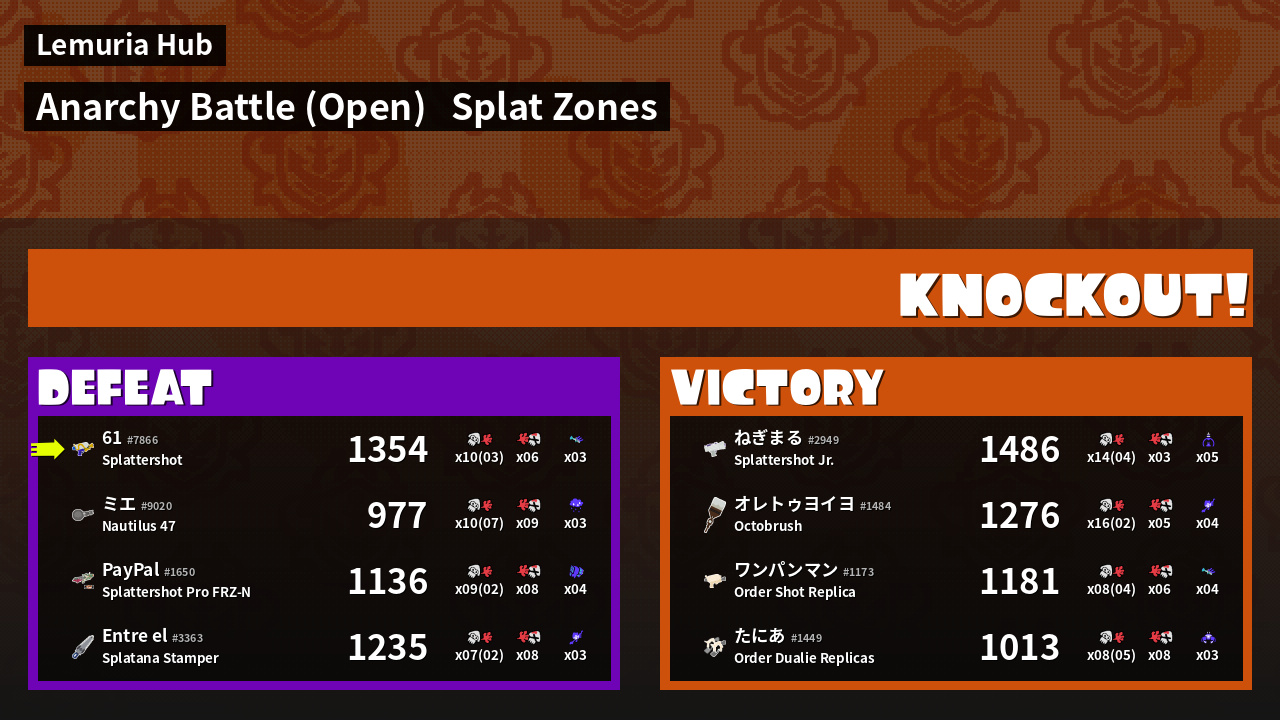 | Mode | Splat Zones - Anarchy Battle (Open) | ||