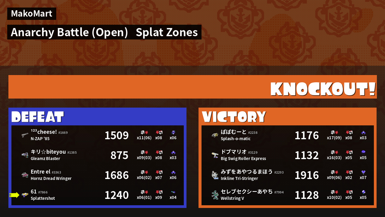 | Mode | Splat Zones - Anarchy Battle (Open) | ||
