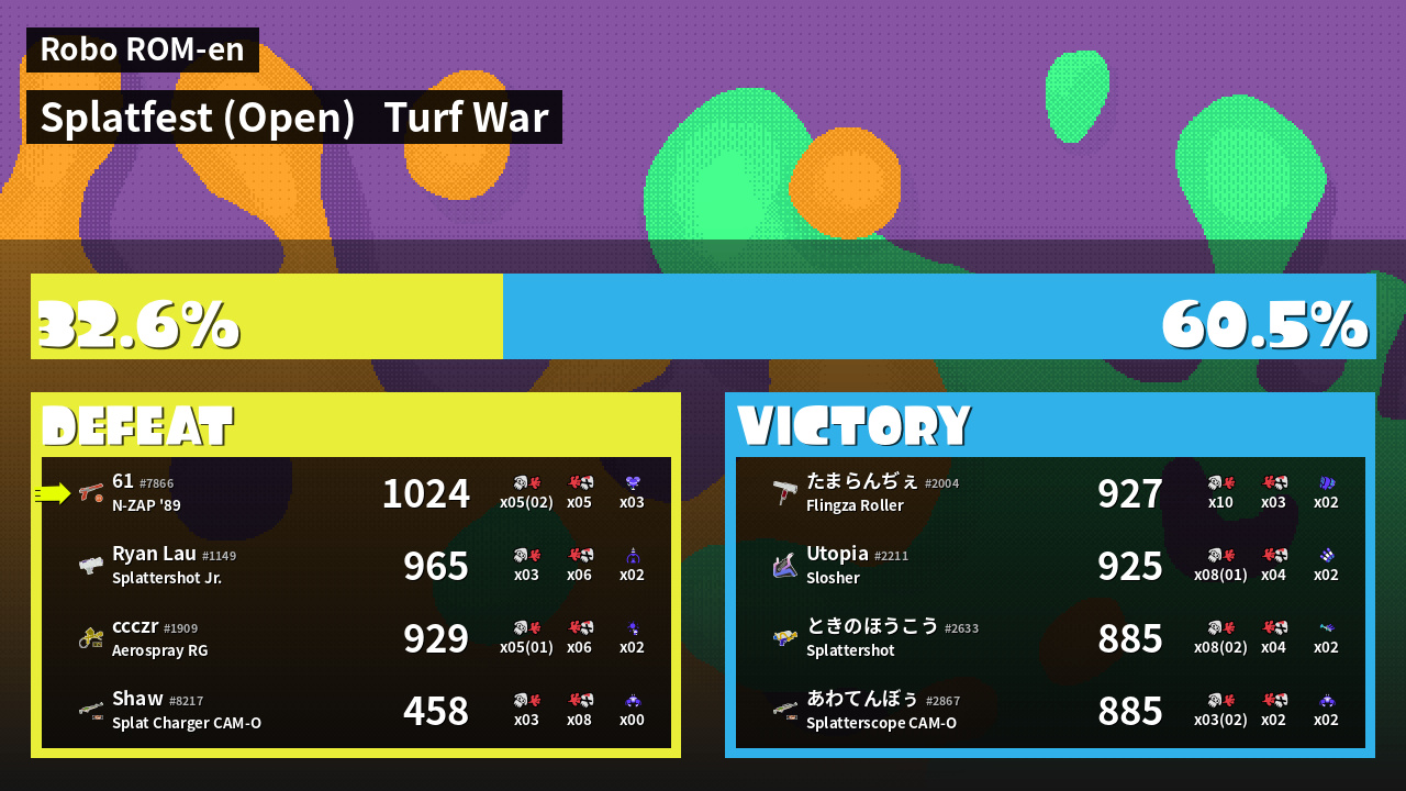 | Medals | #1 Overall Splatter #1 Turf Inker #1 Enemy-Base Inker | ||