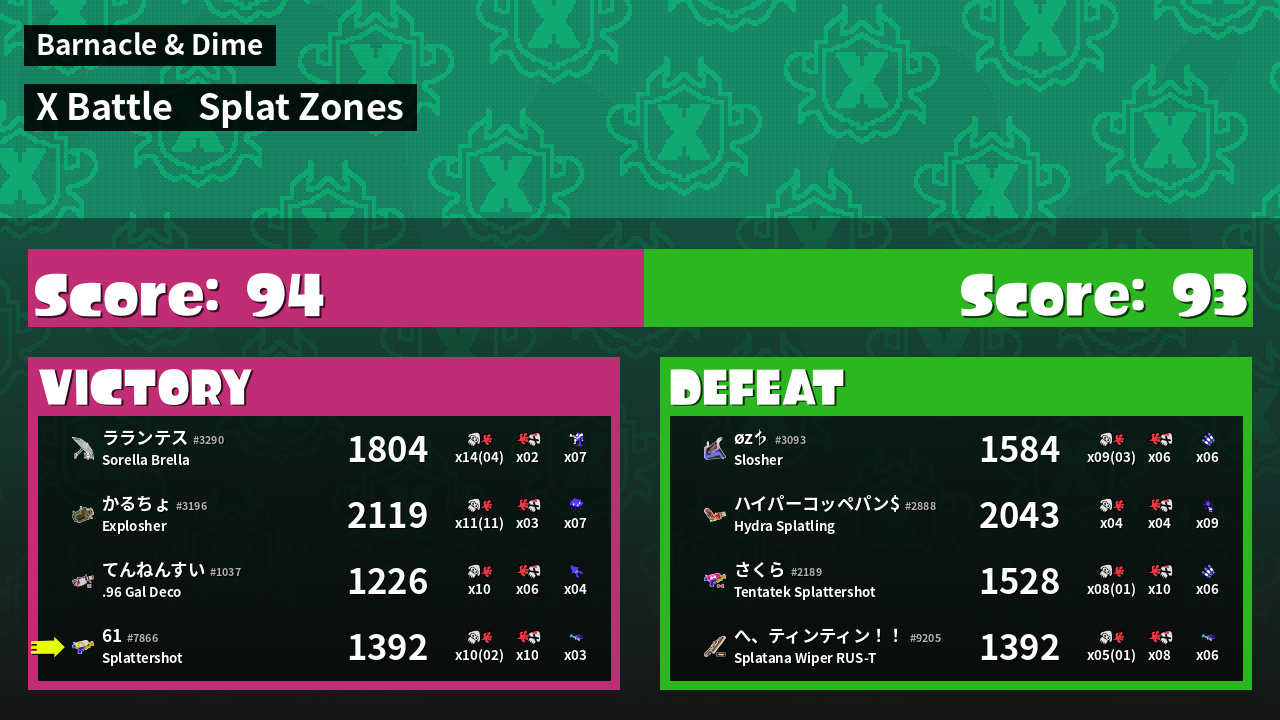 | Medals | #1 Popular Target #1 Damage Taker #1 Ink Consumer | ||