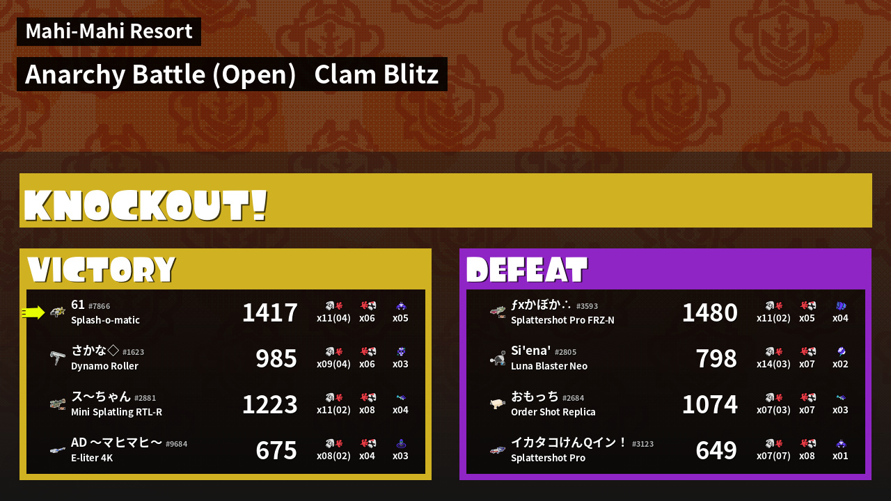| Mode | Clam Blitz - Anarchy Battle (Open) | ||