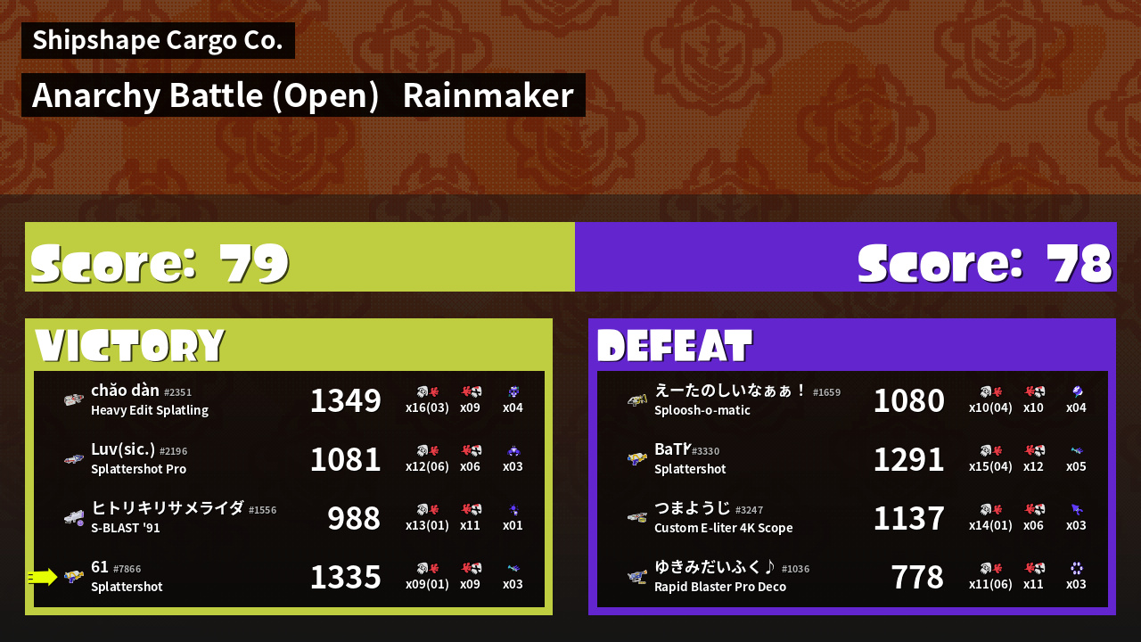 | Mode | Rainmaker - Anarchy Battle (Open) | ||