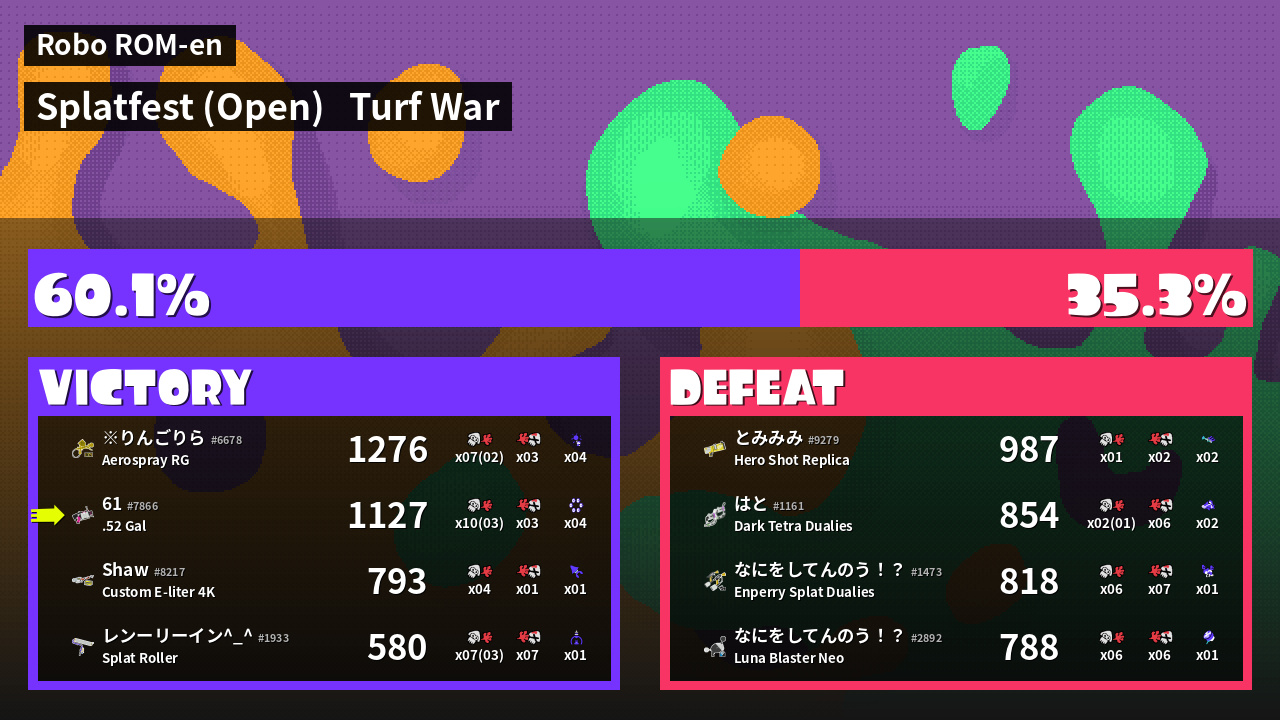 | Medals | #1 Overall Splatter #1 Popular Target #1 Enemy-Base Inker | ||