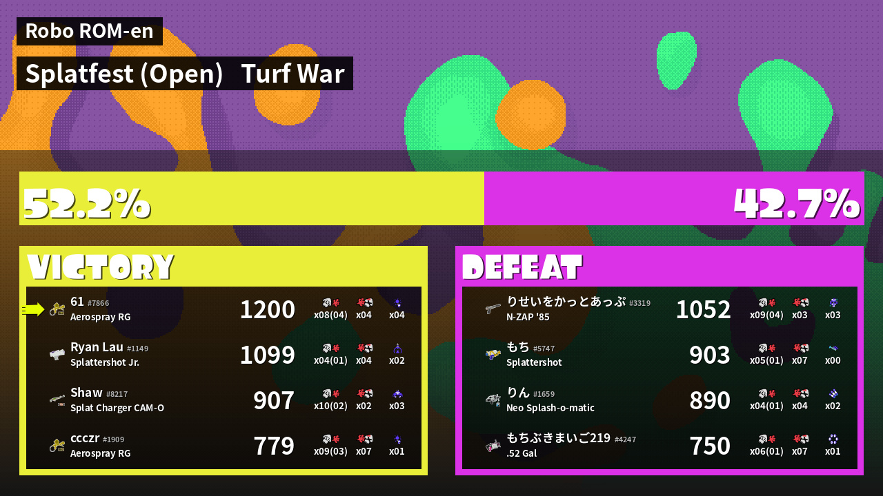 | Medals | #1 Turf Inker #1 Splat Assister #1 Ink Consumer | ||