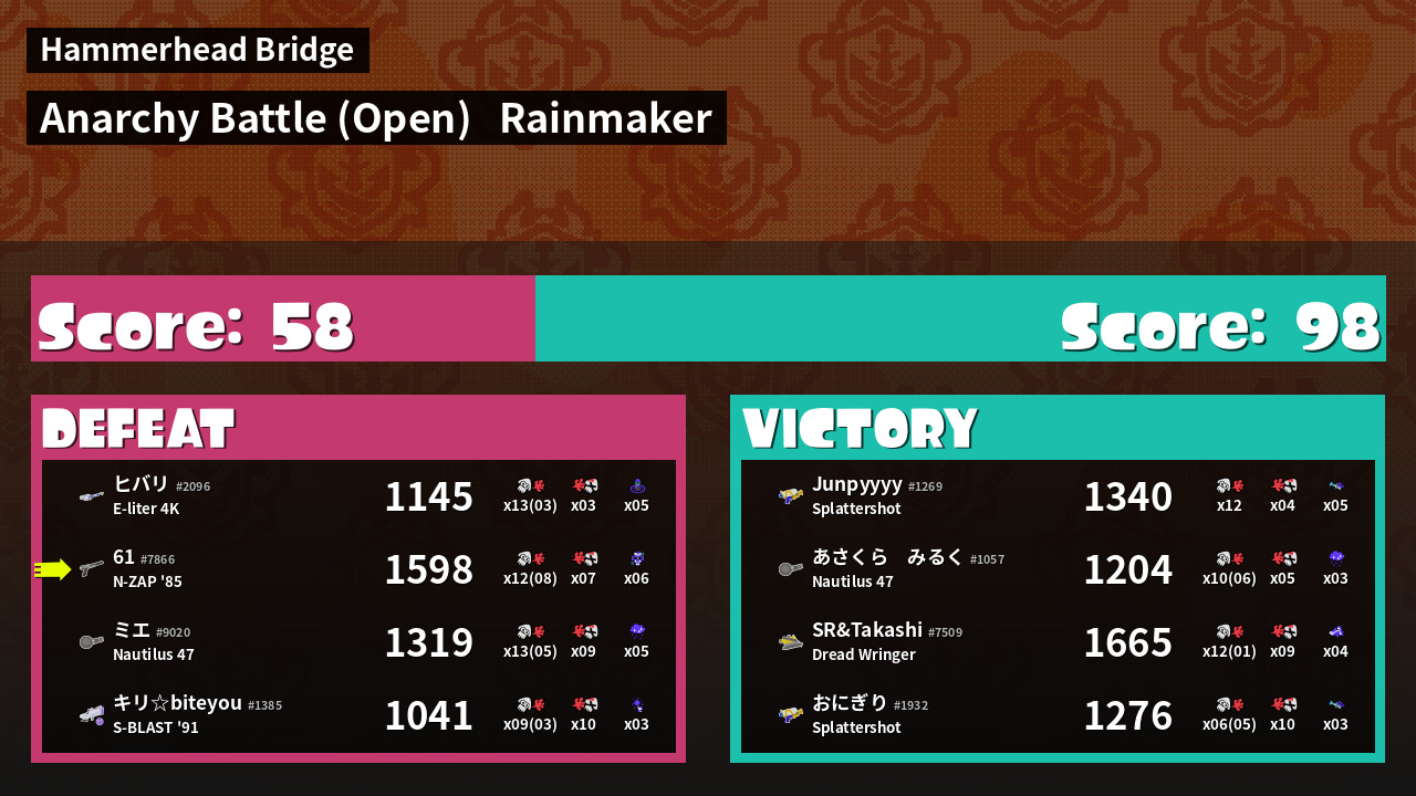 | Mode | Rainmaker - Anarchy Battle (Open) | ||