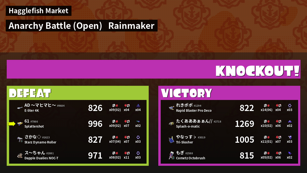 | Mode | Rainmaker - Anarchy Battle (Open) | ||
