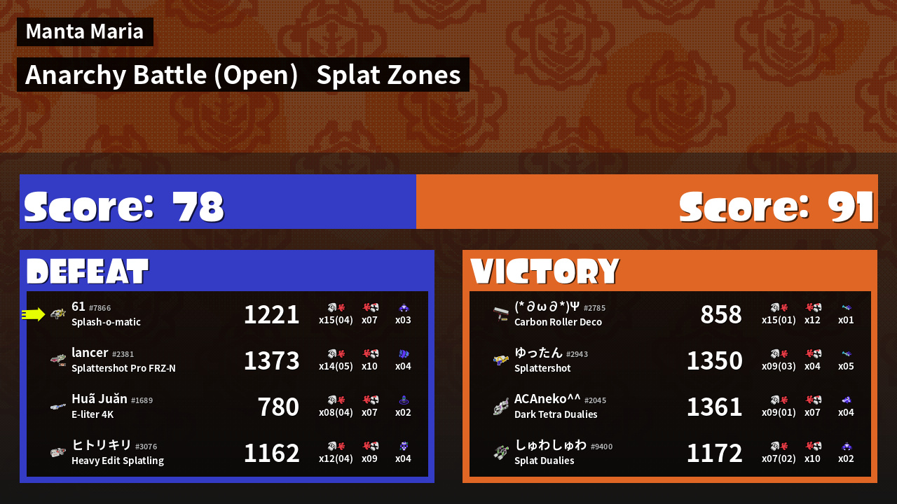| Mode | Splat Zones - Anarchy Battle (Open) | ||