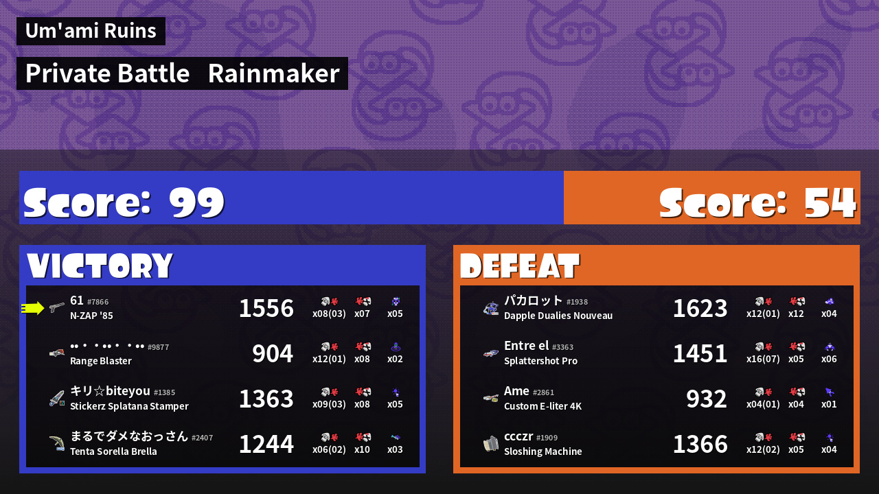 | Mode | Rainmaker - Private Battle | ||