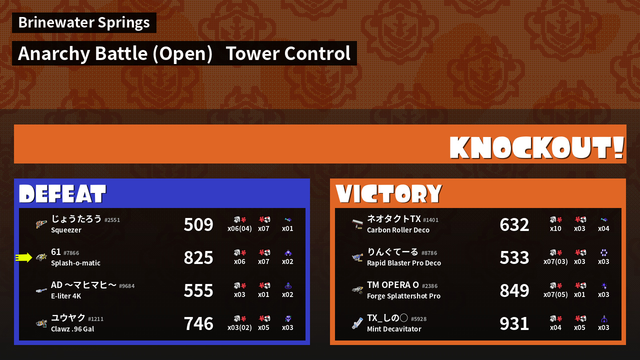 | Mode | Tower Control - Anarchy Battle (Open) | ||