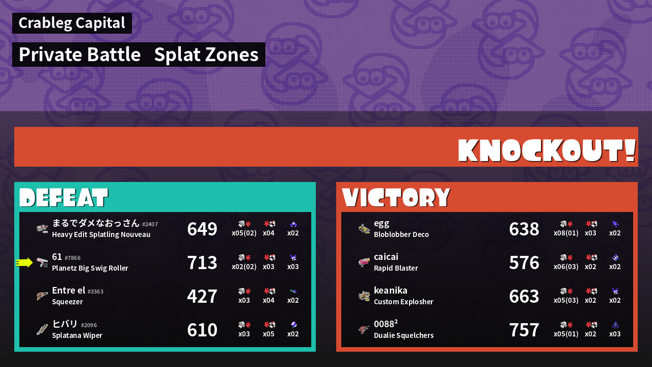 | Mode | Splat Zones - Private Battle | ||