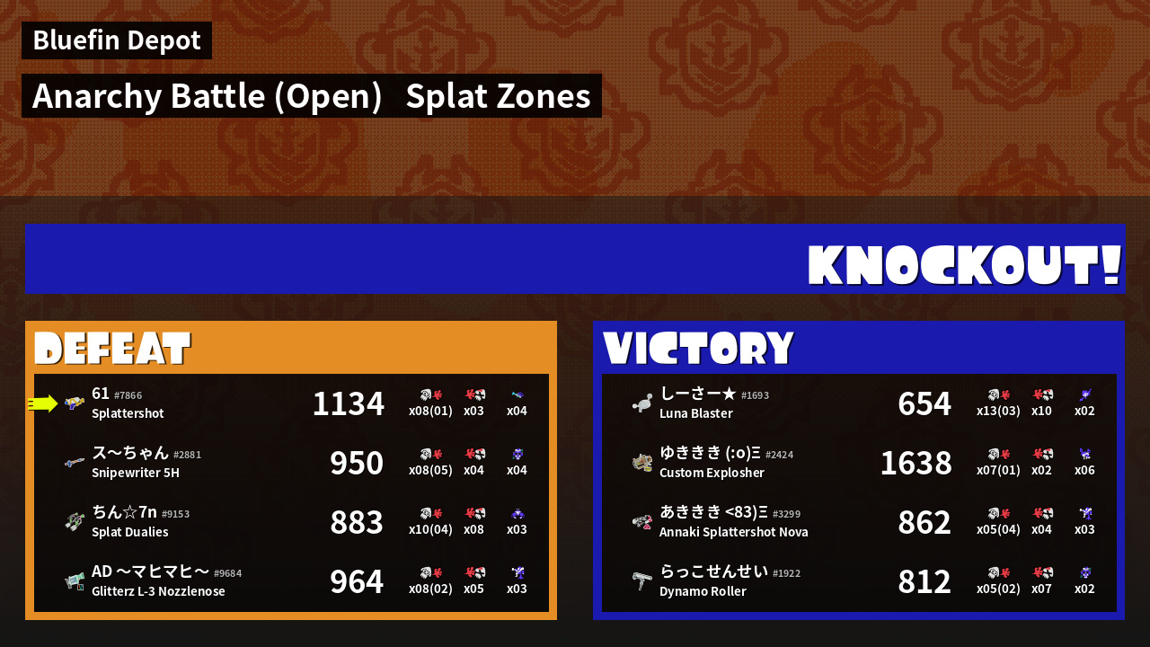 | Mode | Splat Zones - Anarchy Battle (Open) | ||