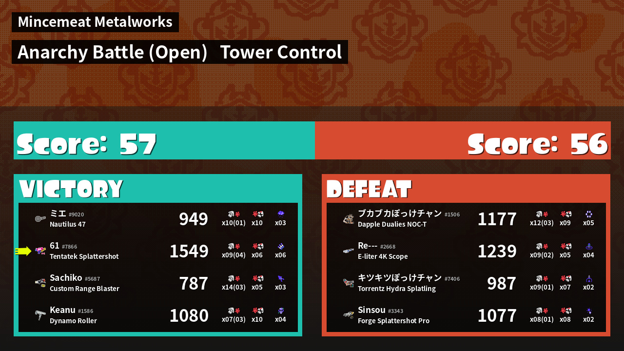| Mode | Tower Control - Anarchy Battle (Open) | ||