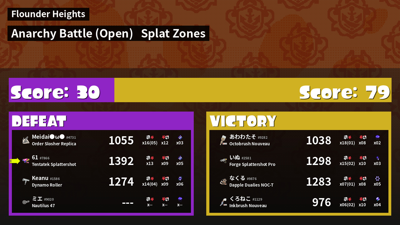 | Mode | Splat Zones - Anarchy Battle (Open) | ||