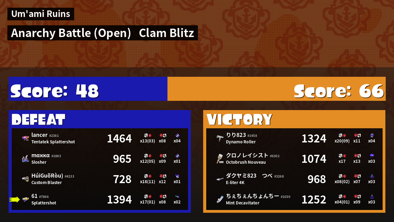 | Mode | Clam Blitz - Anarchy Battle (Open) | ||