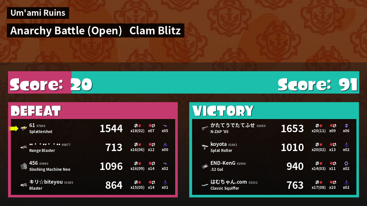 | Mode | Clam Blitz - Anarchy Battle (Open) | ||