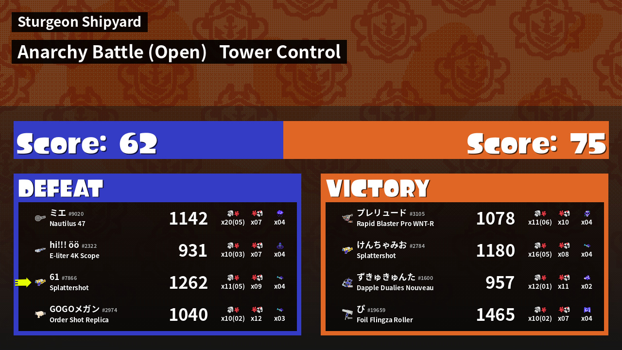 | Mode | Tower Control - Anarchy Battle (Open) | ||