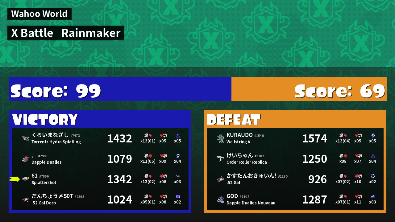 | Medals | #1 Overall Splatter #1 Rainmaker Stopper #1 Damage Taker | ||